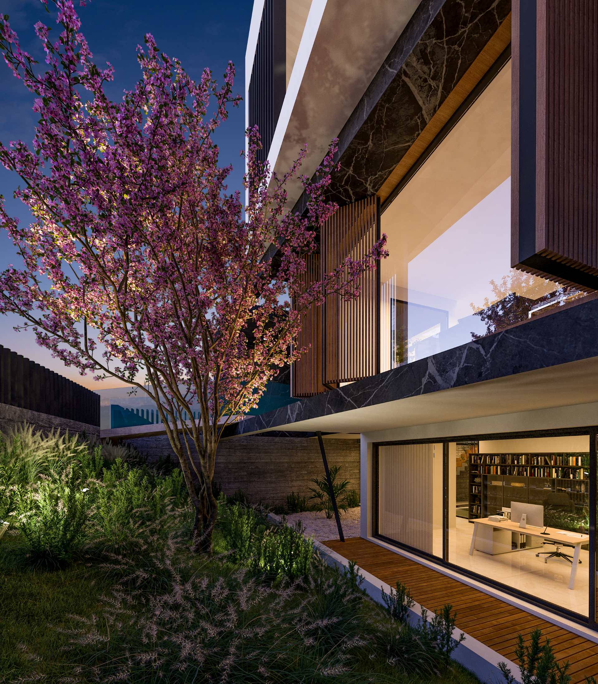 The interior design of this residence embodies modern luxury with a bold, sophisticated edge. Clean architectural lines are balanced by rich textures, refined materials, and dramatic contrasts of light and shadow. Each space is curated to feel both expansive and intimate, with carefully framed views connecting the interior to the surrounding garden and pool. The result is a seamless blend of contemporary elegance and expressive design — a home that feels sculptural, cinematic, and deeply luxurious.